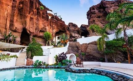Majestically formed around the same rocks from which it was built, a volcanic quarry with natural labyrinths and caves. A truly spectacular work of art created by Nature from the molten lava which once flowed down these same slopes of the ancient volcano above LagOmar.